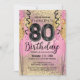 Pink and Gold Glitter 80th Birthday Invitation