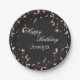 Pink and Gold Glitter Confetti on Black Background Paper Plate