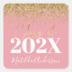 pink gold modern glitter graduation class of announcement sticker. Modern gold and glitter effect and on trend bold typography and script text. Part of a collection.