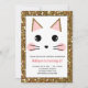Pink and Gold Glitter Kitty Cat Birthday Invitation