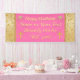 Pink and Gold Happy Birthday Banner, Christian or Your Text or Delete. Type in her Name, Message and Age or Your Text. You, or CALL Designer Linda: 239-949-9090 EST to CHANGE the Pink Background and Gold Text COLORS. You, or Designer Linda can also TRANSFER this Design to other pretty birthday party supplies for her, birthday decorations and gifts.