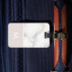 Custom-designed luggage tag featuring modern dusty pink and marble design with personalized monogram.