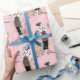 Pink parisian themed shimmering foil art deco wrapping paper.