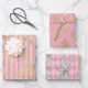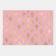 Faux foil vintage Paris pink and gold patterned wrapping paper featuring roses, fleur-de-lis, and harlequin lady patterns.