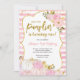 Pink and Gold Floral Pumpkin First Birthday Invitation