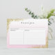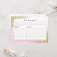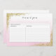 Recipe card with gold glitter look design and ombre pink watercolor background.
