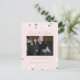 An light pink background with scattered floating hearts in various sizes. Gold colored font accents this photo save the date postcard. Add your picture and personalize with all of your information.
