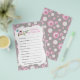 Pink Polka Dot Owl Baby Shower Theme Wishes Game. (PLEASE check size before ordering - MORE SIZES ARE AVAILABLE). ⭐This Product is 100% Customizable. Graphics and / or text can be added, deleted, moved, resized, changed around, rotated, etc... 99% of my designs in my store are done in layers. This makes it easy for you to resize and move the graphics and text around so that it will fit each product perfectly. ⭐ (Please be sure to resize, change, add, delete or move any graphics or text if needed before ordering) You can also "TRANSFER DESIGN" on other Zazzle products and adjust the design to fit most of Zazzle items. (button is down on the right side of the page) Some of the text graphics have ready to fill in the box(es) or you can Click on the "CUSTOMIZE" button to add, move, delete, resize, background color or change any of the font or graphics. The design is made with high resolution vector and/or digital graphics for a professional print. ⭐NOTE: (THIS IS A PRINT. All zazzle product designs are "prints" unless otherwise stated under "About This Product" area) The design will be printed EXACTLY like you see it on the screen and on the product...so please make sure when you do your changes on the resizing of any of the graphics or text that it fits in the areas correctly and that your spelling and wording is how you like it to be in size, color and font. If you have any questions about the "DESIGN ONLY" or need help please contact ME DIRECTLY at siggyscott@comcast.net or visit my store link: https://www.zazzle.com/store/designsbydonnasiggy (Copy and Paste) I'll be happy to help. ⭐ ALL OTHER QUESTIONS SUCH AS (shipping, refund, the printing being incorrect, the product itself, etc...) please contact Zazzle or the Maker ⭐DIRECTLY⭐. Thank you for the support and stopping by my store - DesignsbyDonnaSiggy. © Donna Siegrist⭐⭐⭐ ZAZZLE promises 100% satisfaction.