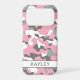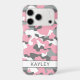Customize this pink, gray and white camouflage iPhone 17 pro case with your name in a trendy modern CAP font in gray on white. It's so modern, girly and trendy! Perfect for any country girl!