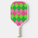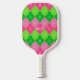 Pink and Green Argyle with White Stitching Pickleball Paddle