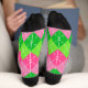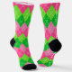 Preppy sporty pink, green and white argyle. The argyle pattern has long been recognized as a classic design that has stood the test of time. The repeated diamond-shaped pattern evokes a sense of sophistication and elegance, adding a touch of refinement to fashion accessories The symmetry and precision of the pattern also align with the sometimes meticulous angles and shots of the sports like golf and pickleball. Additionally, the combination of bold and contrasting colours within the argyle design creates visual interest and makes a statement. Overall, the argyle pattern has timeless charm, aesthetic appeal, and ability to add a touch of style and personality to any outfit. Colourful many shades of pink and green with white stitching argyle fashion socks.
