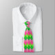 Pink and Green Argyle with White Stitching Tie