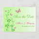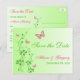 This hot pink and spring green floral save the date post card has SIMULATED pink and green butterflies and flowers on it that matches the wedding invitation shown below. If you require any other matching items in this design, please email your request to niteowlstudio@gmail.com.