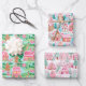 Pink and Green Christmas Gingerbread Houses Wrapping Paper Sheet