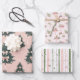 Pastel Christmas wrapping paper featuring beautiful Christmas trees with pink bows, candy canes and stripes with snowflakes all in a pink, green and white colour scheme. Check out our store for more Christmas wrapping paper.