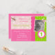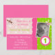 Invite your guests in a cute and fun way to your little ones birthday party with this fully personalized birthday invite. It features a pink and lime green background with pretty little dragonflies.