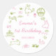 Pink and Green Easter 1st Birthday Party Classic Round Sticker