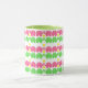 Fun and whimsical elephants in pink and green with yellow daisy design pattern mug.