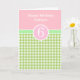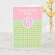 A pink and green personalized 6th birthday card for girls. This sweet pink and green gingham 6th birthday card can be personalized with her name on the front of the greeting card. The inside card message can be personalized as well if wanted. The back has a pink and green gingham design. Please see all photos. This cute personalized 6th birthday card would make a great keepsake for a daughter, granddaughter, goddaughter, etc.