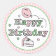 Pink and Green Happy Birthday Classic Round Sticker
