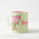 Pink and Green Monogram Letter F and Name Kids Two-Tone Coffee Mug