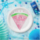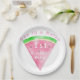 Personalize this fun pink and green watermelon "One in a Melon" birthday party plate.