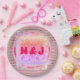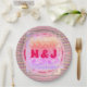 Pink and Green Pretty Hearts Pattern and Initials Paper Plate