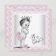 Adorable pink princess vintage baby girl shower invitation. This cute pink and grey baby shower invitation is easily customized for your event by adding your event details, font style, font size & colour, and wording.