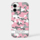 Customize this pink grey and white camouflage iPhone 17 case with your name in a trendy modern CAP font in grey on white. It's so modern, girly and trendy! Perfect for any country girl!