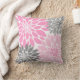Pink and Grey Chrysanthemums Floral Pattern Throw Pillow