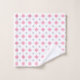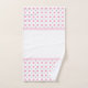 A stylish pink and grey diamond-patterned bathroom towel set.