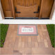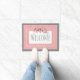 Welcome your guests with a fresh pink and grey doormat. The text "Welcome" is set in grey on a white background. The text is framed inside an image of a delicate watercolor arched floral swag of pink and rose flowers centred above. The doormat is elegantly framed with a grey border.