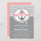 Modern and whimsical bridal shopwer invitation feautirng pink and grey nautical accents and patterns.
