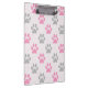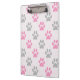 Cute pink and grey paw prints pattern clipboard