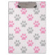Pink and grey paw prints pattern clipboard