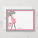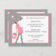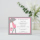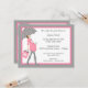 The front and back of this baby shower invitation has a trendy mother-to-be carrying a shopping bag and holding a polka dot umbrella. Coordinating colours complete the frame on this contemporary design. There is plenty of customizable text for you to personalize this announcement with your party information.