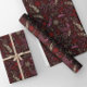 Pink and ivory floral doodles in maroon. wrapping paper sheet