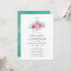 Trendy pink roses first holy communion invitation with mint glitter tropical foliage designed to be quickly and easily customized to your event specifics.