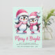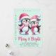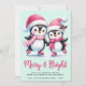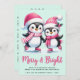 Pink and Mint Merry and Bright Penguin Christmas Holiday Card