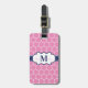 Pink and Navy Monogram Geometric Pattern Luggage Tag