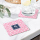 Add a dash of bespoke style to your bar cart styling setup with our monogrammed paper coasters. Our preppy chic design features a modern, Greek-inspired geometric pattern in vibrant pink and white, with your single initial monogram in contrasting navy blue.