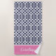 This custom made-to-order beach towel has a preppy trellis pattern in navy blue, pink and white. Personalize it with your name monogram or other custom text in a modern script font. Use the design tools to choose any background colours, edit the text fonts and colours or upload your own photos to create a custom monogrammed beach towel.