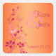 This pink and orange floral with butterflies square wedding sticker/envelope seal matches the wedding invitation shown below.