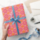 This wrapping paper features a pink and orange geometric pattern.