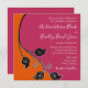 Raspberry pink and pumpkin orange leafy vine wedding invitation. The text is currently customized for a wedding, but can be changed to suit any other special occasion. Pink and orange is a bold wedding colour theme. It's very bright and cheerful and is perfect for a summer wedding. This invitation is inspired by nature... vines and bright, vibrant flowers.