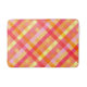 Soft, blended plaid bath mat in shades of pink, coral, soft orange and light yellow