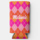 Pink and Orange Preppy Argyle Personalized Seltzer Can Cooler