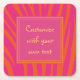 Pink and Orange Zebra Stripes Custom Text Square Paper Coaster