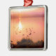 Pink and peach lake sunset metal ornament