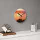 Pink and peach lake sunset round clock
